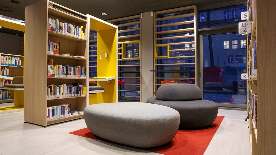 작센에서 가장 현대적인 도서관 중 하나이자 가장 바쁜 도서관 중 하나입니다. 아침이 되면 카멘츠 시립도서관은 인근 레싱 문법학교에서 온 학생들로 가득 차고, 학생들은 이곳에서 휴식을 취합니다. 이곳에는 휴게실이 있고, 책을 빌릴 수 있으며, 심지어 30분 동안 독서를 할 수도 있다고 한 학생은 말합니다. 휴게실이 멋지게 디자인되지 않은 학교보다 도서관이 더 아늑합니다. 다른 두 명은 여기서 와이파이 비밀번호를 빌려 휴대폰으로 게임을 하기도 한다고 말합니다.