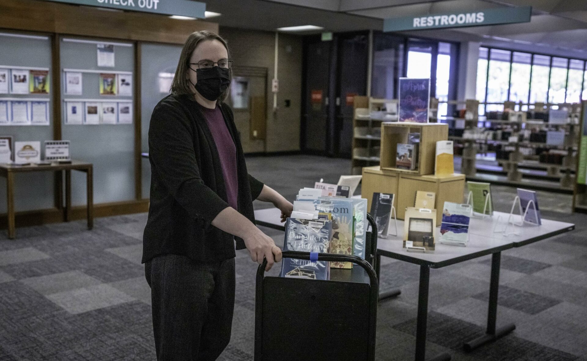 <18개 분관으로 구성된 앨버커키 시에서 운영하는 도서관 시스템은 2021 회계연도에 800,000명 이상의 직접 방문을 기록했습니다. (Roberto E. Rosales/ Albuquerque Journal)>
