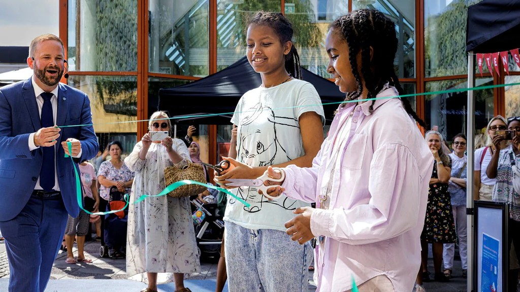 예비 7 학년생 유스라 이맘(Yusra Imam)과 미칼 브란(Mikal Brahne)은 개관식 동안 리본을 자르는 임무를 맡은 두 명의 젊은 도서관 이용자입니다. 올해 초, 그들은 Textpiloterna 협회에서 수여하는 Tensta의 시립 초등학교 학생들을 위한 새로 제정된 독서 장려상인 “Reading Plog”를 수상했습니다. Yusra Imam은 새 건물이 유망하다고 생각합니다.