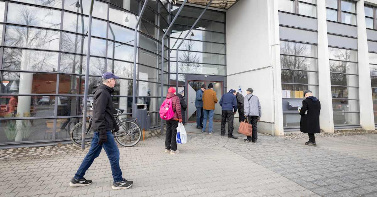 도서관이 열리기 전부터 양쪽 출입문 앞에 사람들이 줄을 서 있었다. 사진: 헤이키 하팔라이넨(Heikki Haapalainen) / Yle